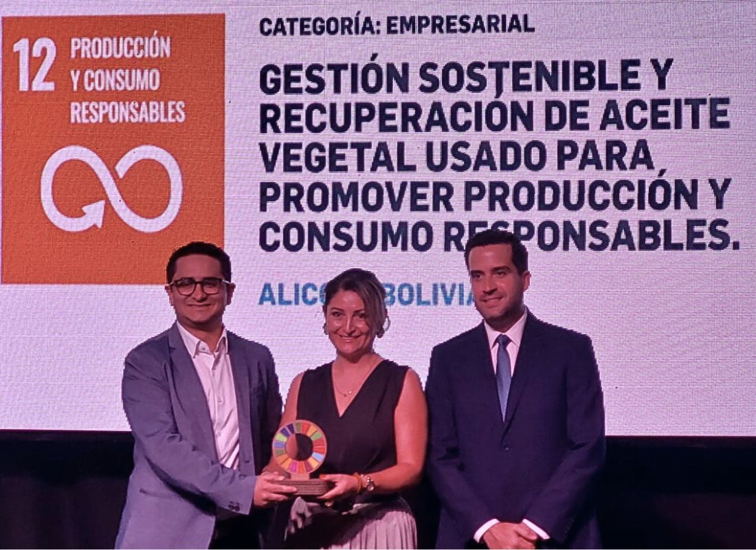 Alicorp fue una de las empresas galardonadas en la tercera versión en Bolivia de los Reconocimientos ODS a las Buenas Prácticas de Desarrollo Sostenible, gracias a su iniciativa “Ecoaliado”, enfocada en la gestión sostenible y recuperación de aceite vegetal usado. El proyecto promueve prácticas responsables de producción y consumo, con un impacto directo en el ODS 12, Producción y Consumo Responsables.