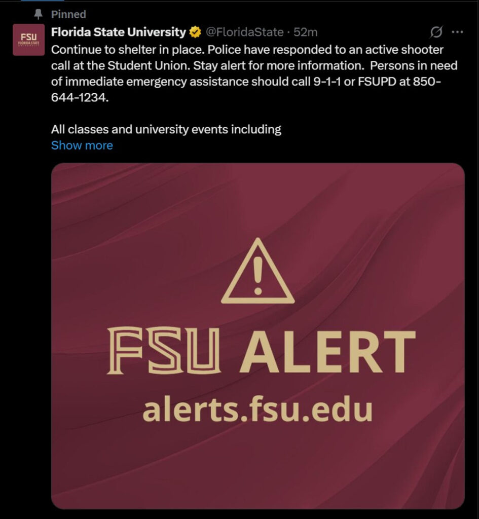 Imagen tomada de la cuenta oficial de la red social X de la Universidad Estatal de Florida. EFE/ Universidad Estatal de Florida