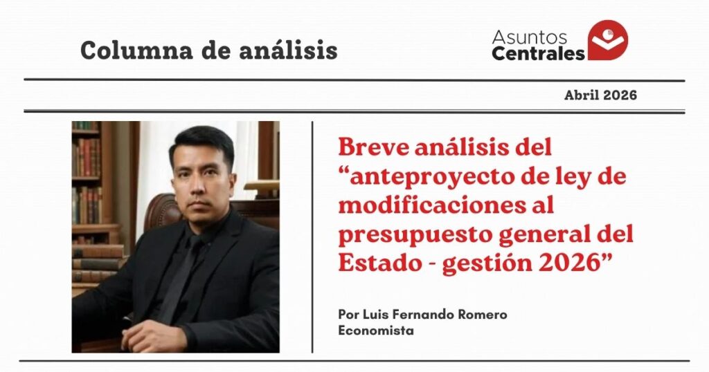 Inicio » Opinión » Breve análisis del “anteproyecto de ley de modificaciones al presupuesto general del Estado – gestión 2026”
