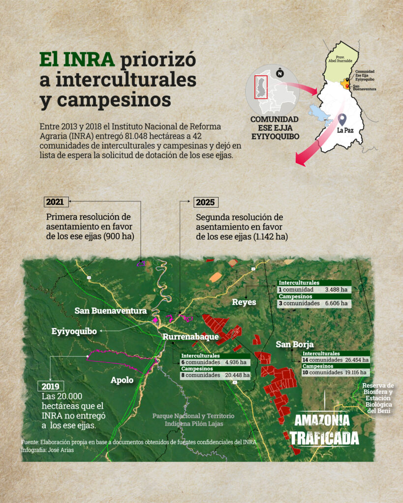 Mientras el Estado avanzaba con la dotación de tierras fiscales a campesinos e interculturales en el norte amazónico de Bolivia, la demanda territorial del pueblo indígena ese ejja de Eyiyoquibo quedó relegada por casi una década.