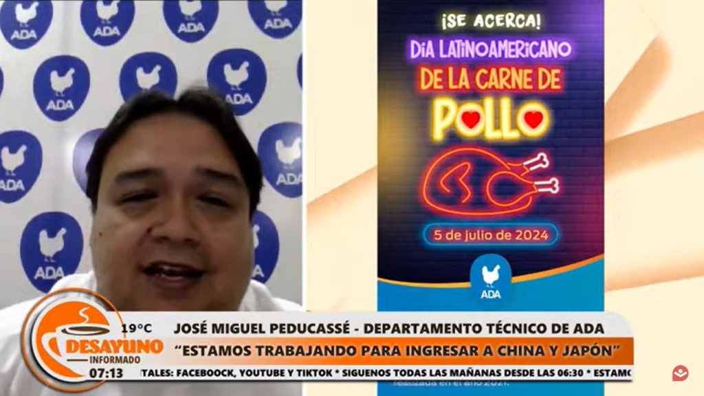 Hoy se cumple el Día Latinoamericano de la Carne de Pollo. En Desayuno Informado, José Miguel Peducassé, jefe del departamento técnico de la Asociación de Avicultores de Santa Cruz (ADA) reveló que el consumo per cápita de pollo subió de 36 a 46 kilos de carne de pollo por año en Bolivia. La producción de pollo asciende a 253 millones de pollos al año y los avicultores ya están exportando dicha carne a Perú, Venezuela y Cuba, con planes de expansión a China y Japón.