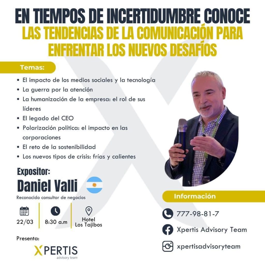 XPertis Advisory Team, una compañía que brinda soluciones integrales a las empresas en Bolivia, realizará un Conversatorio de Negocios con el reconocido Consultor argentino Daniel Valli, bajo el título: “Las claves de la comunicación que todo CEO considerar en 2024”.
