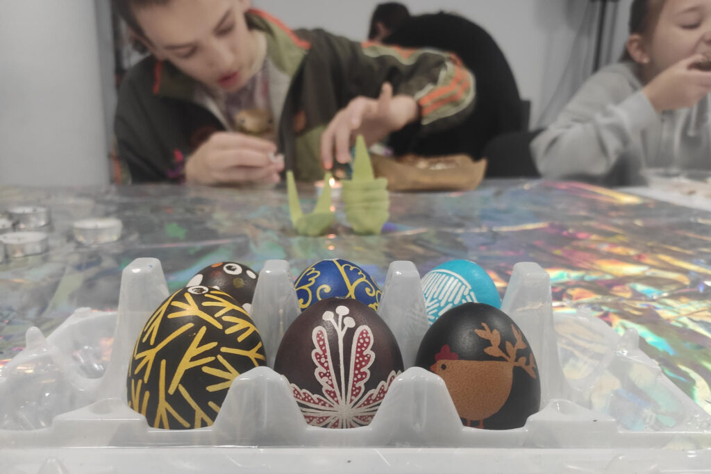 Decenas de niños y sus familias se reunieron allí para decorar los “pisanki” -tradicionales huevos de Pascua- con la cantante pop ucraniana Yagoda.