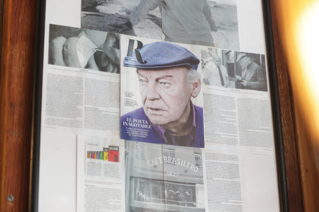 Como todo visitante se da cuenta ya tras dar un simple vistazo a sus paredes, entrar al Café Brasilero es entrar al café de Galeano, al punto de que, como cuenta su administrador, Santiago Gómez, darle al autor un café y un jugo de cortesía era una de las curiosas condiciones del contrato de alquiler que firmó con sus dueños cuando comenzó a gestionarlo, 16 años atrás.