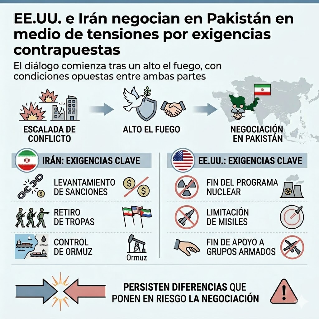 Estados Unidos e Irán abrirán una nueva fase de negociaciones diplomáticas en Pakistán con el objetivo de avanzar hacia un acuerdo que ponga fin al conflicto iniciado en febrero de 2026. El diálogo se da tras un alto el fuego temporal de dos semanas, facilitado por la mediación pakistaní para contener la escalada militar.