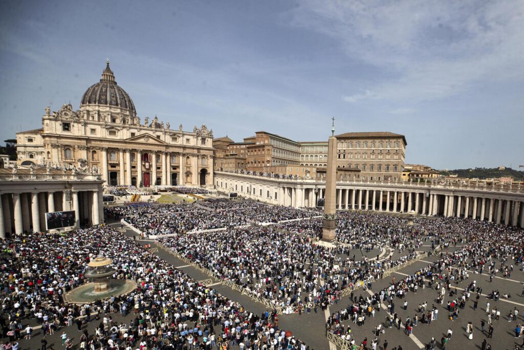 Fieles en la misa de Pascua en la Plaza de San Pedro en el Vaticano este 20 de abril. EFE/ANGELO CARCONI