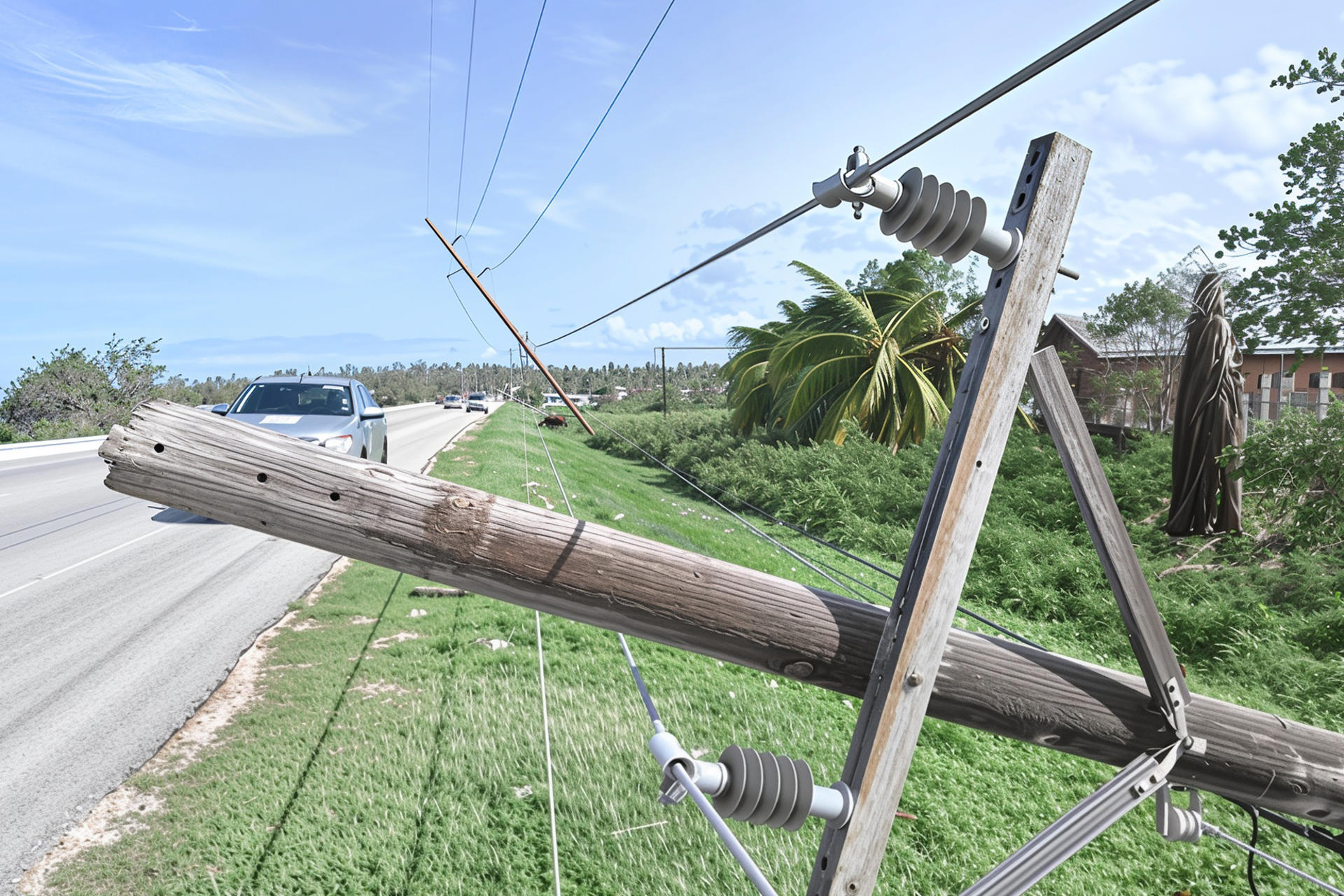 Fotografía que muestra un poste de luz caído por el paso del huracán Melissa este miércoles, en la Parroquia de Saint Ann (Jamaica). EFE/ Rudolph Brown