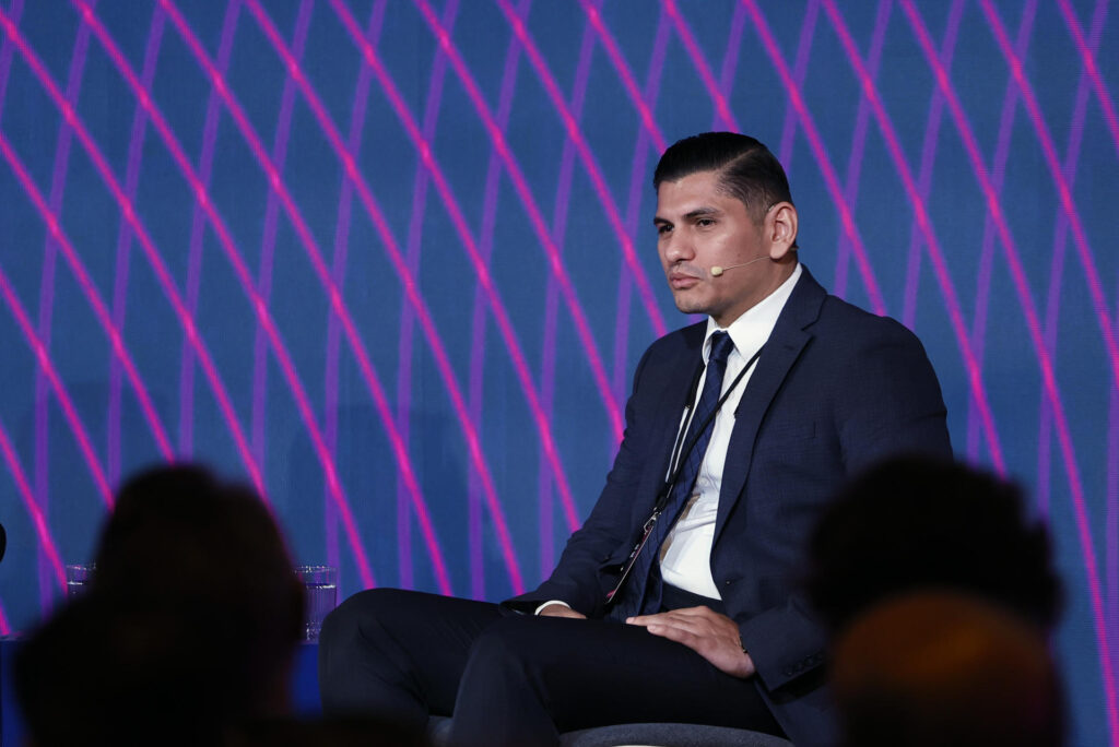 El profesor mexicano Sergio Juárez, reconocido por implementar métodos de enseñanza innovadores en la escuela primaria, interviene en el diálogo 'La cultura, la educación y la Inteligencia Artificial' en la segunda jornada del Congreso Futuro Iberoamericano celebrado en Madrid. EFE/ Mariscal