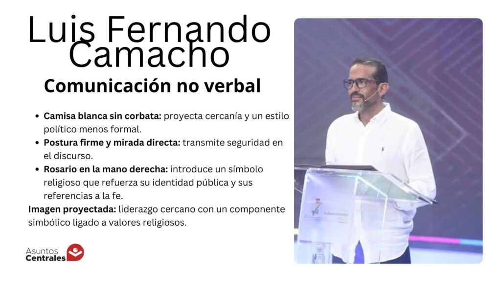 Algo similar ocurrió con Luis Fernando Camacho y Guido Nayar, quienes también aparecieron con camisas blancas sin corbata. En el caso de Camacho, además, suele destacarse el uso de un rosario en la mano, un elemento simbólico que forma parte de su identidad pública y su referencia a valores religiosos.