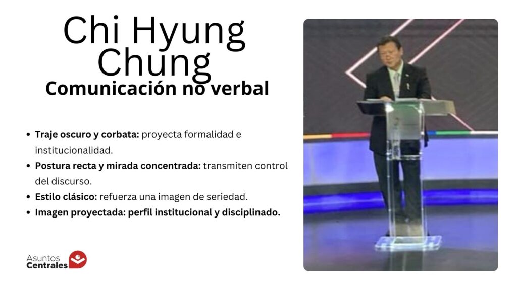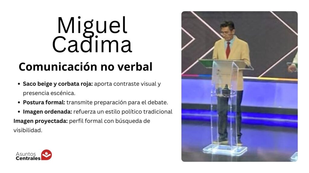 Un primer grupo optó por la imagen institucional, representada por el traje y la corbata. Es el caso de Chi Hyung Chung (Movimiento Tercer Sistema) y Miguel Cadima (TODOS), quienes aparecieron con una estética clásica de debate político. Este estilo suele asociarse con formalidad, disciplina y experiencia en la gestión pública.