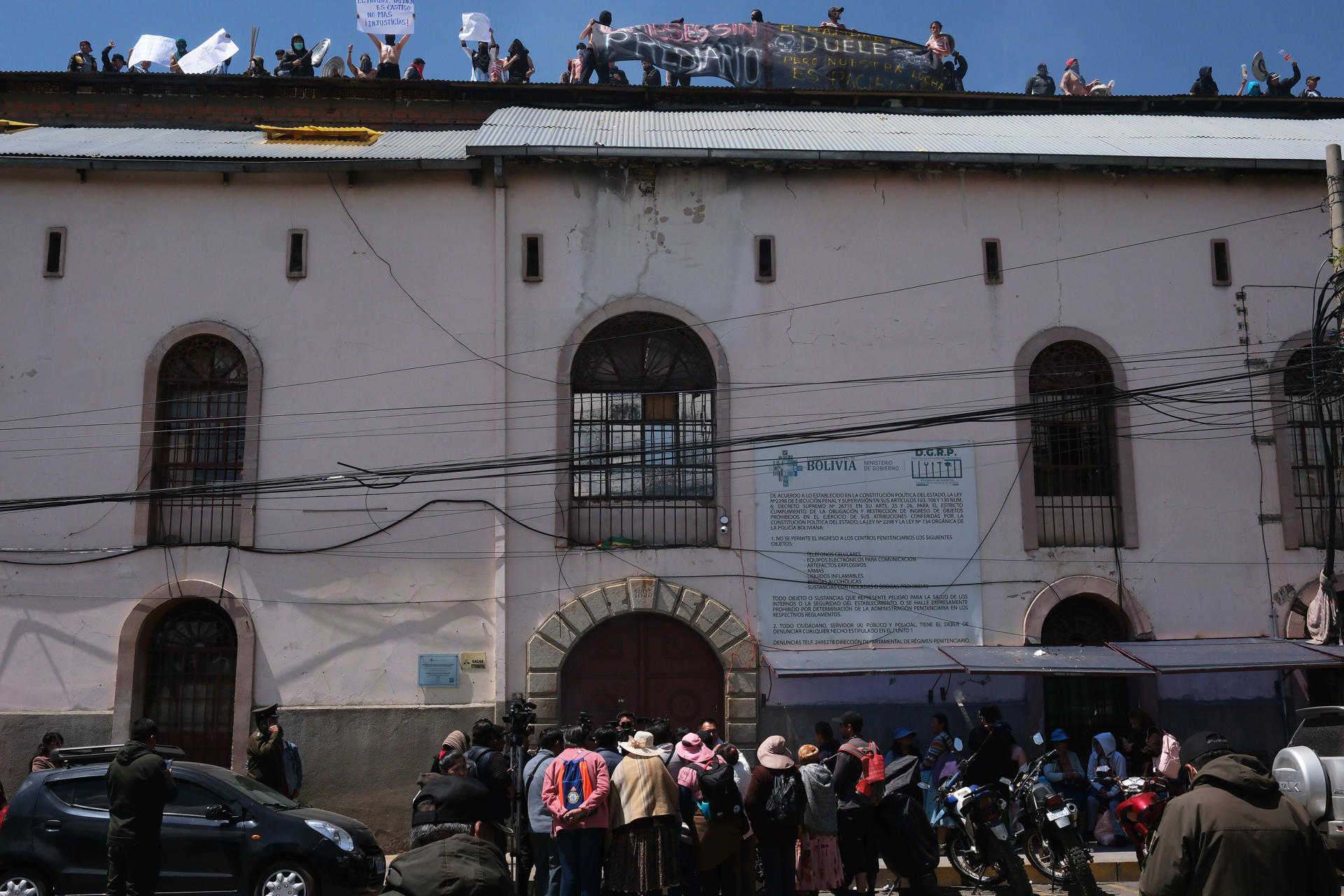 “6 meses sin prediario. El hambre duele”, rezaba una enorme pancarta que exhibieron los reclusos desde el tejado de la cárcel de San Pedro, situada en el barrio homónimo cerca del centro histórico de La Paz, mientras algunos golpeaban ollas vacías con palos.