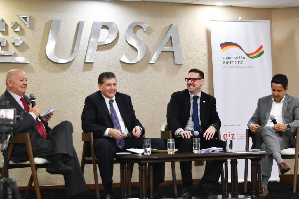 Previo al panel, se firmó un convenio entre la UPSA y la Cooperación Alemana, a través de GIZ/ProTransición, con el objetivo de fortalecer las capacidades técnicas y generar oportunidades laborales en el ámbito energético. La alianza contempla el desarrollo de programas de capacitación en energía solar, eficiencia energética y movilidad eléctrica. GIZ apoyará en el diseño, monitoreo y evaluación de los cursos, mientras que la UPSA estará a cargo de su implementación. El Viceministerio actuará como articulador entre las instituciones.