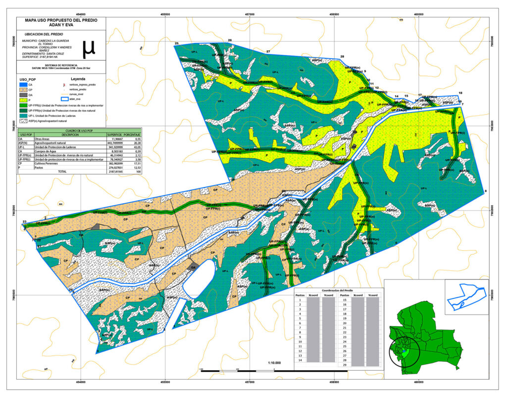 Pero, aún así, el entonces director de la ABT Santa Cruz, Willy Severiche, aprobó el POP de “Adán y Eva” por diez años. Este autorizó “establecer un sistema agrosilvopastoril en 721,2 hectáreas (32,9 %)”, donde el desmonte debía hacerse de forma manual o con motocultor y había que conservar los árboles mayores de un metro y medio de altura.