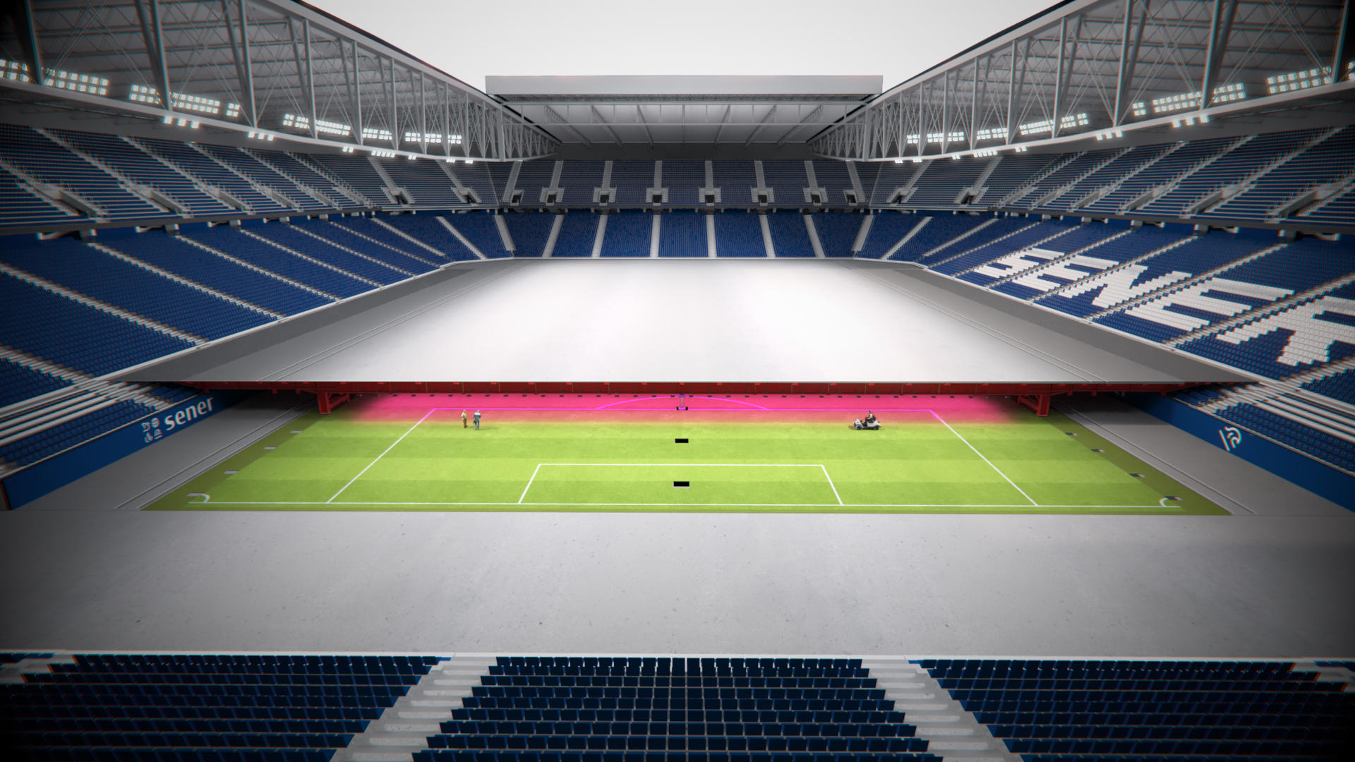 La obra de ingeniería garantiza la máxima calidad del césped mediante la instalación de una cubierta móvil y retráctil que permite la celebración de eventos más allá del ámbito deportivo. De este modo, protege el césped, manteniéndolo en perfectas condiciones con una intervención humana mínima.