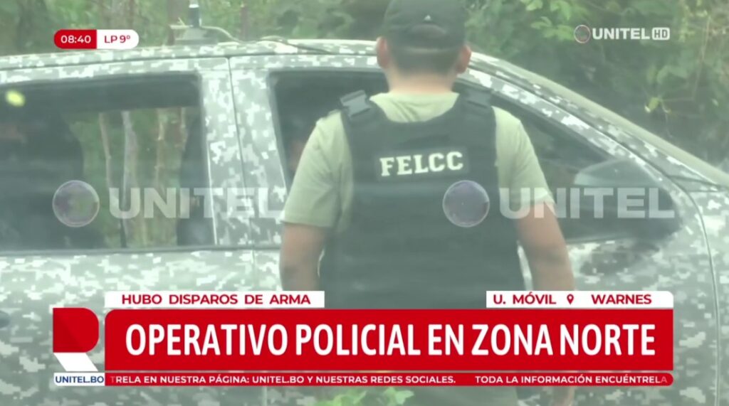 Según el reporte preliminar de Unitel, un fuerte contingente policial, que incluye a la Fuerza Especial de Lucha Contra el Narcotráfico (FELCN), se desplazó a la zona tras recibir un reporte de actividad sospechosa. Los agentes fueron recibidos con disparos de arma de fuego, lo que desencadenó una balacera. Helicópteros policiales sobrevuelan el área para garantizar la seguridad.