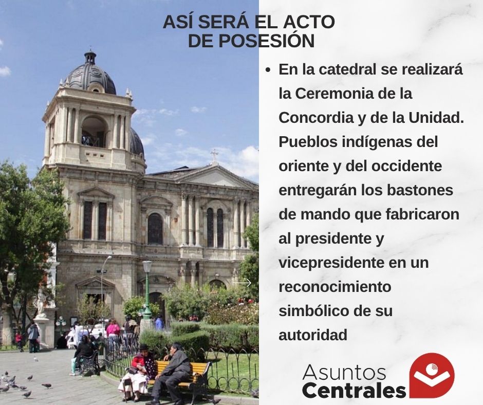 Desde el balcón del Palacio de Gobierno, el presidente y el vicepresidente saludarán a la multitud reunida en la plaza Murillo, mientras que en el otro balcón se ubicarán los invitados especiales y los mandatarios extranjeros asistentes a la investidura.