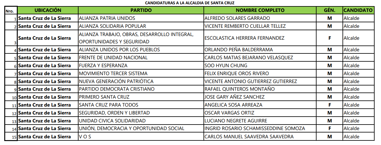 Home»Política»Santa Cruz define candidaturas: amplia participación y lista preliminar de postulantes