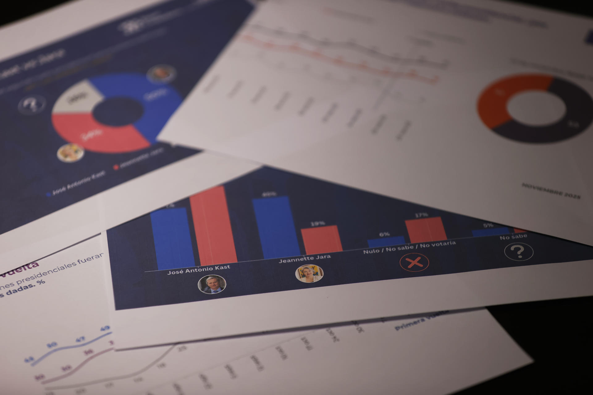 La encuesta Data influye muestra, en tanto, un 49 % en intención de voto para Kast, un 34 % para Jara, un 14 % nulo o blanco y un 3 % de abstención, pese a que el voto es obligatorio.