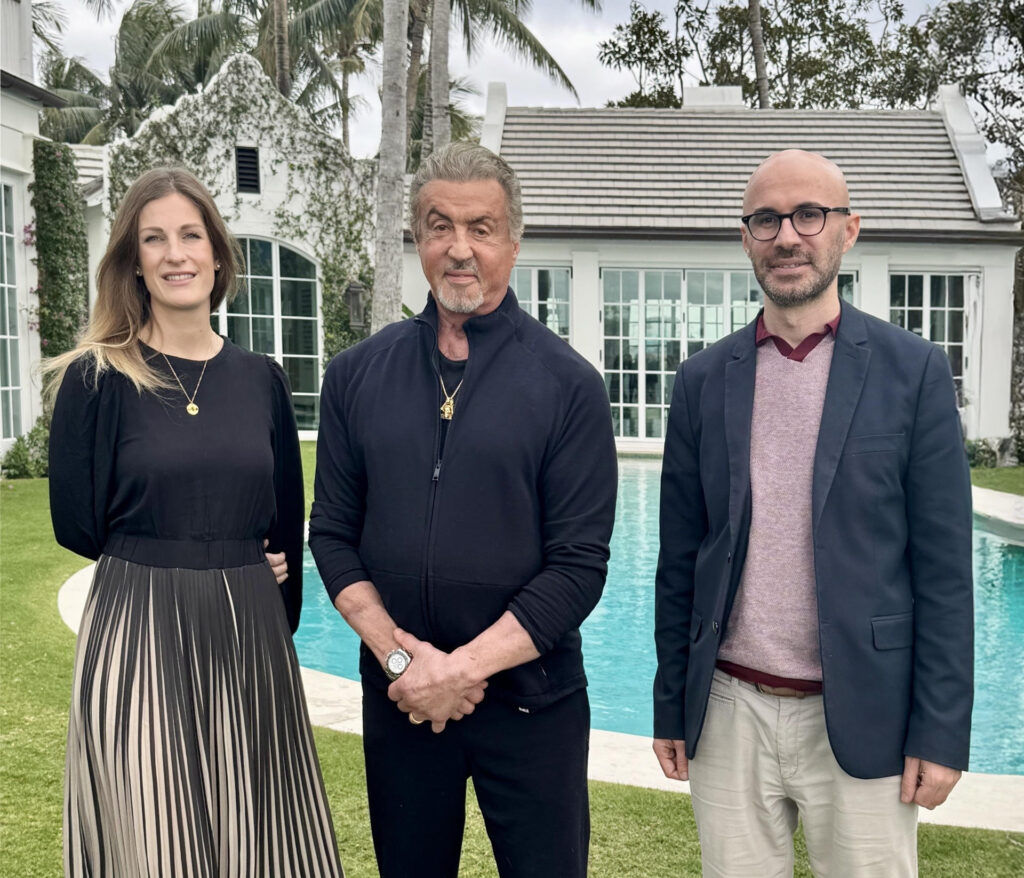 Una empresa emergente suiza, Largo.ai, ha desarrollado un método que predice si una película tendrá éxito o no ya en sus primeras fases de producción, algo que ha atraído ya a productores y cineastas de Hollywood como Sylvester Stallone (c), que ha invertido en la "startup", junto a la directora de operaciones de la compañía (Céline Udriot), y el consejero delegado y cofundador de la firma, Sami Arpa.-EFE/ Largo.ai ***SOLO USO EDITORIAL/SOLO DISPONIBLE PARA ILUSTRAR LA NOTICIA QUE ACOMPAÑA (CRÉDITO OBLIGATORIO)***